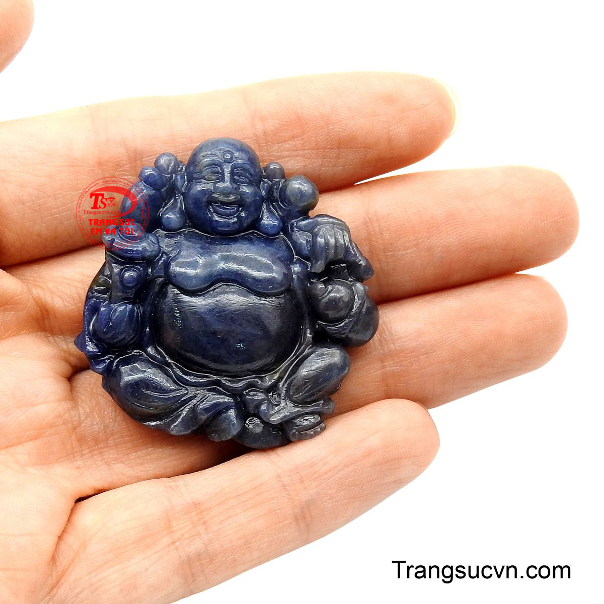 Mặt phật di lặc hỷ phúc được chế tác tinh xảo từ một khối đá quý Sapphire có màu xanh đậm và huyền bí.