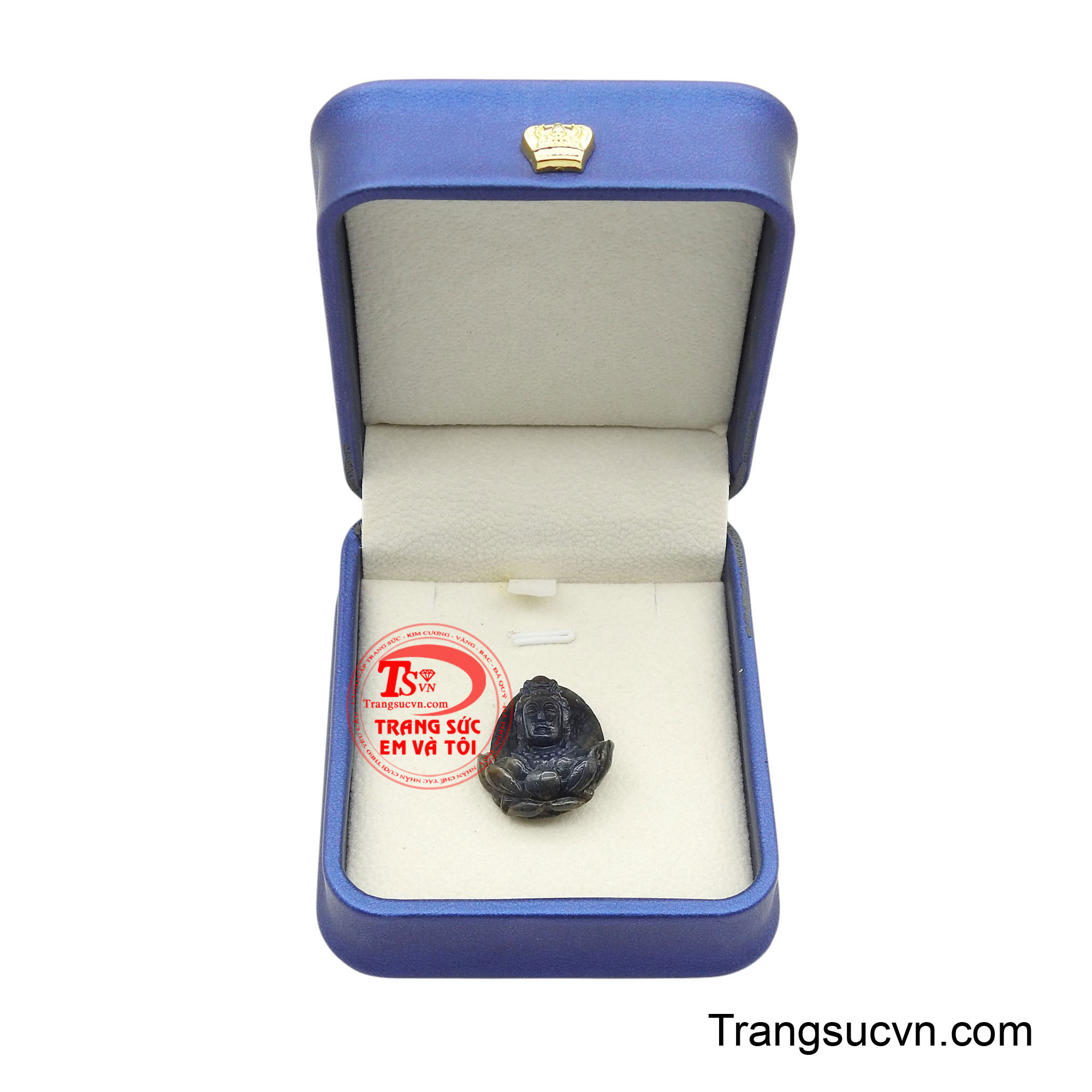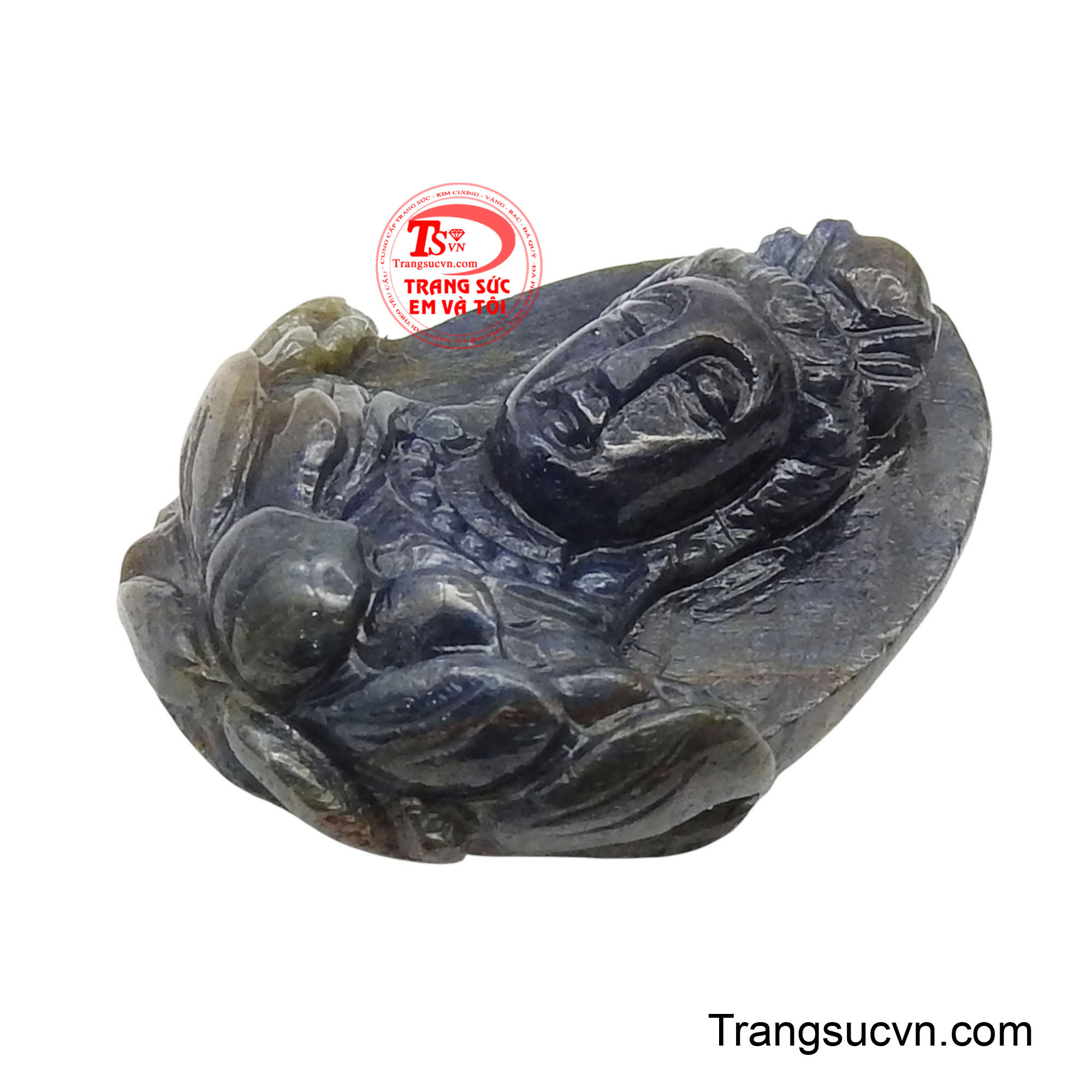 Mặt Phật Quan Âm Bảo Hộ Từ Bi là tuyệt tác kết hợp giữa nghệ thuật chế tác thủ công tinh xảo và năng lượng linh thiêng của đá quý. Viên sapphire lam được tuyển chọn kỹ lưỡng với độ sáng ổn định, mang sắc xanh dịu mát như mặt biển đang lặng sóng. Trên nền đá ấy, hình tượng Quan Thế Âm Bồ Tát được khắc họa trong dáng vẻ hiền hòa, nhân ái, đôi mắt khép nhẹ toát lên sự bao dung và trí tuệ thấu hiểu muôn loài. Từng đường viền gương mặt đều được chế tác mềm mại, tinh tế đến từng chi tiết. Ánh sáng phản chiếu qua lớp đá sapphire tạo nên hiệu ứng hào quang lan tỏa, khiến khuôn dung Quan Âm trở nên sống động, mang lại cảm giác bình yên và ấm áp cho người nhìn.