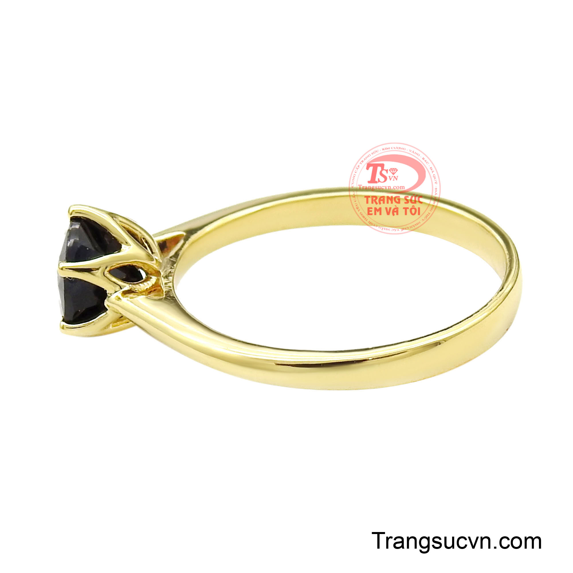 Nhẫn nữ sapphire kiêu hãnh chinh phục ánh nhìn bằng vẻ đẹp trầm sâu và lắng đọng. Viên sapphire đen được mài theo dáng tròn cổ điển, nơi từng mặt cắt được sắp xếp cân đối, giúp bề mặt đá phản chiếu ánh sáng một cách đầy chiều sâu. Sắc đen của sapphire không mang cảm giác nặng nề, mà gợi nên sự vững vàng và điềm tĩnh. Khi ánh sáng chạm nhẹ, viên đá phát ra những điểm sáng tinh tế như nhịp thở chậm rãi, tạo nên sức hút âm thầm nhưng bền bỉ. Thiết kế nhẫn được tiết chế tối đa: ổ đá gọn, đai nhẫn trơn mịn, không họa tiết dư thừa. Tất cả nhằm tôn vinh viên sapphire đen làm trung tâm, giữ trọn tinh thần tối giản, hiện đại và cá tính.