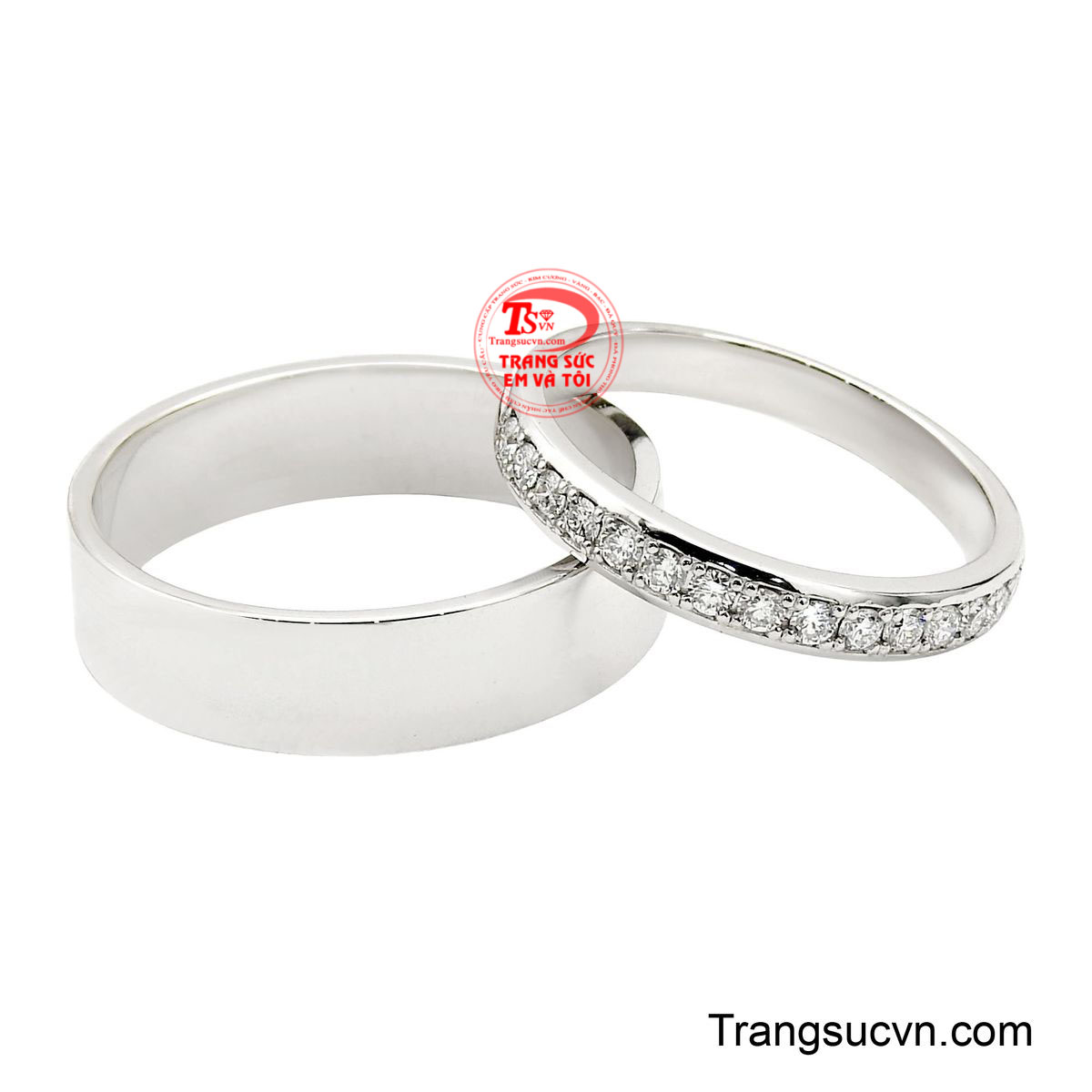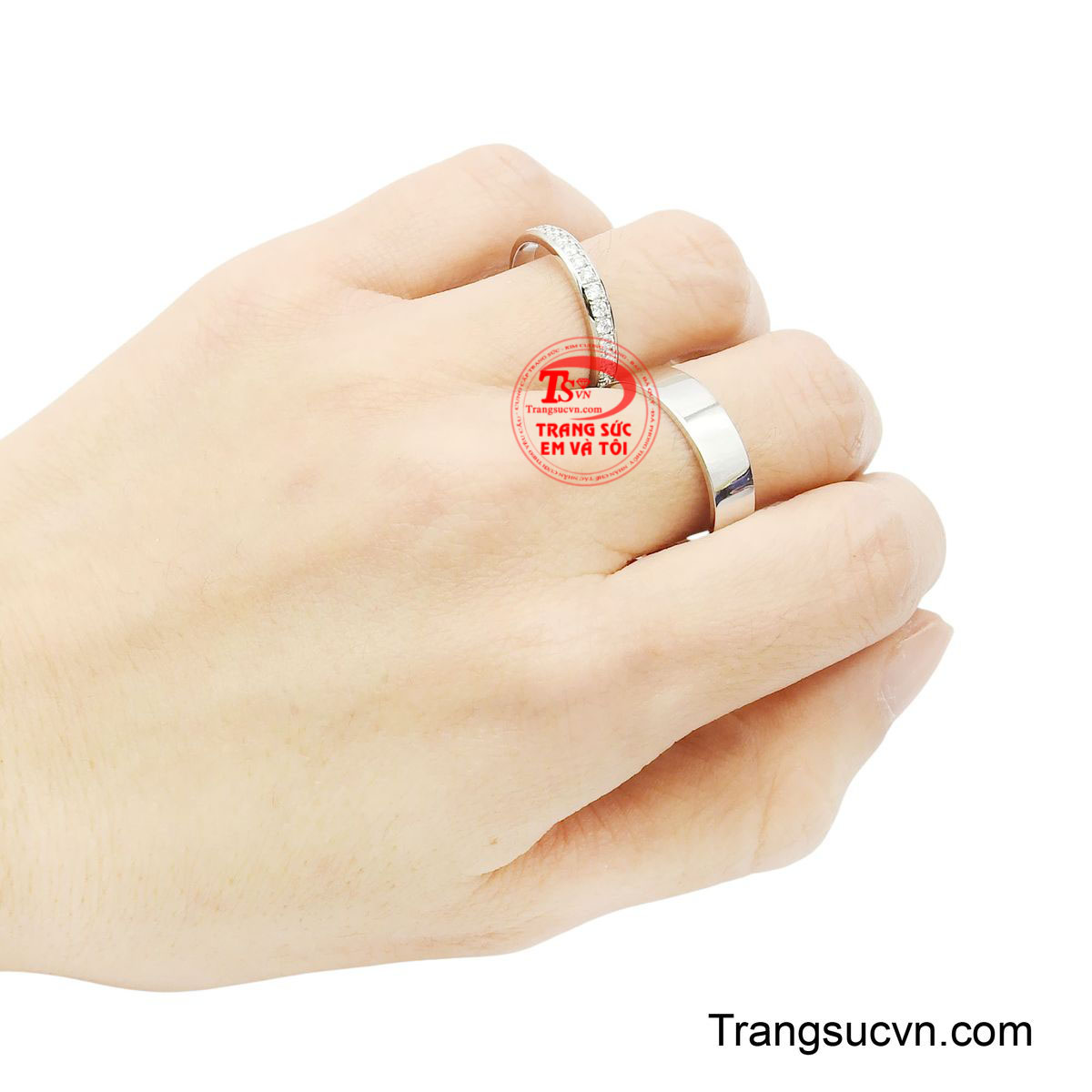 Thiết kế tinh giản nhưng sang trọng, nổi bật với những viên kim cương lấp lánh tượng trưng cho sự vĩnh cửu và niềm tin son sắt.