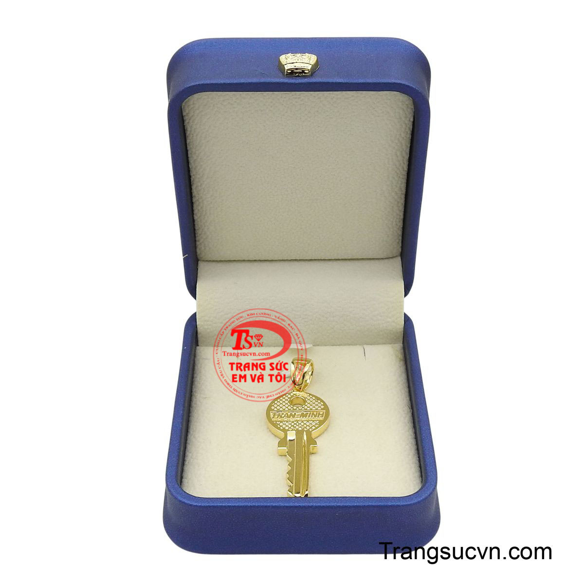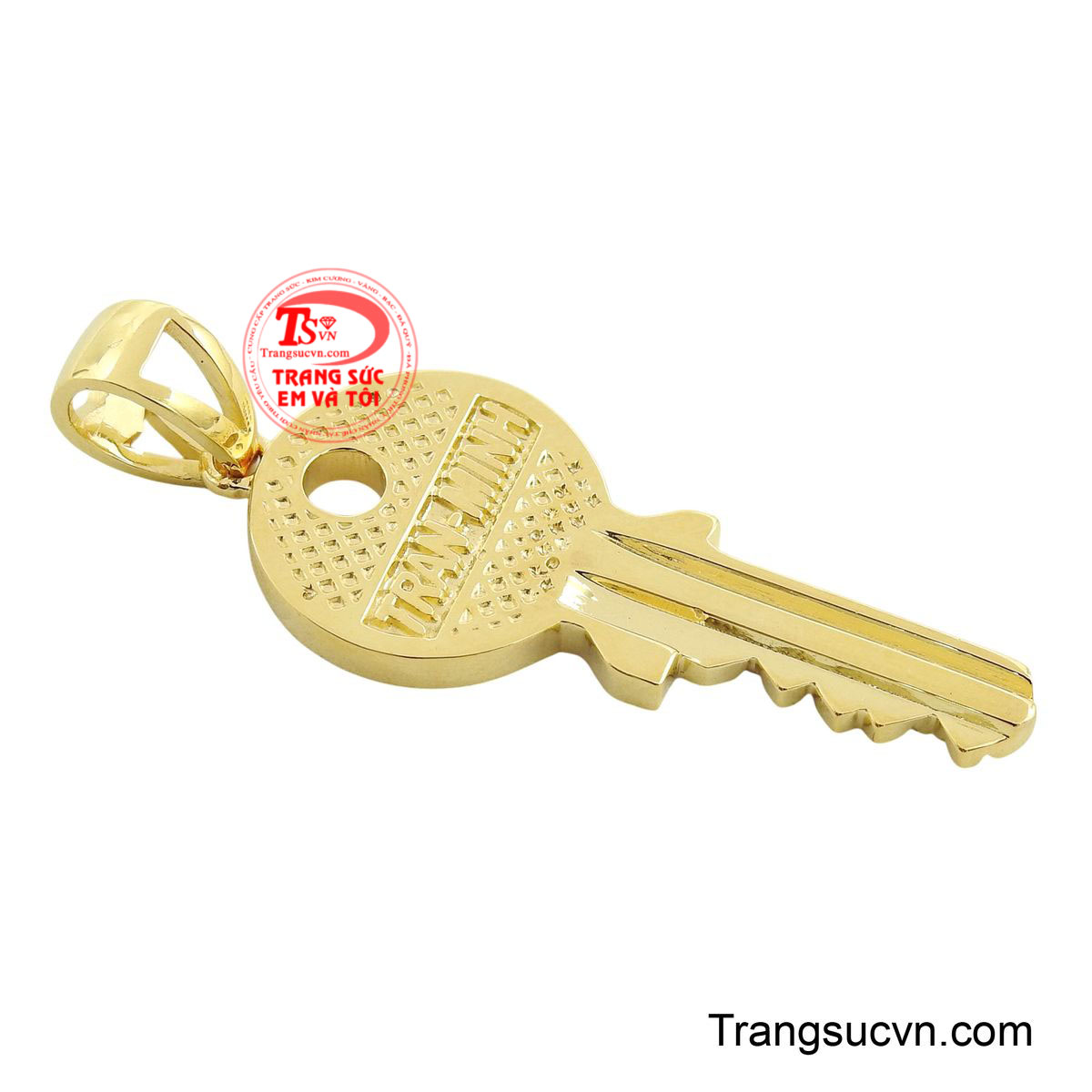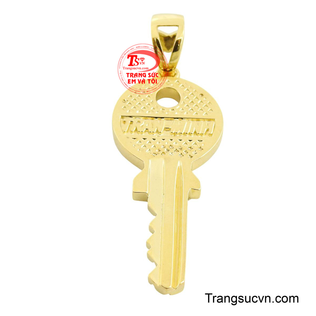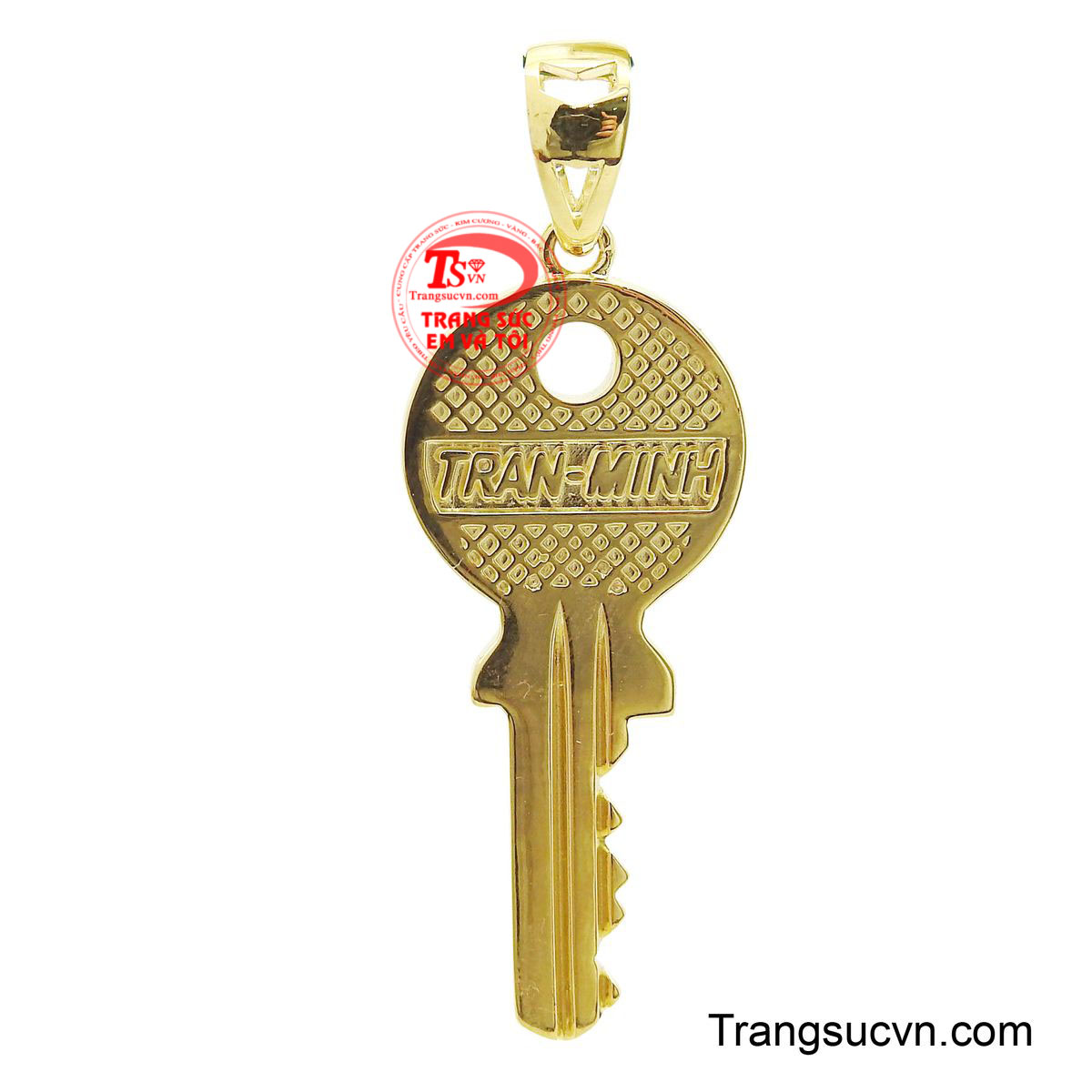 Mặt dây chìa khóa thành công là hiện thân của sự thành đạt và quyền lực, được thiết kế dành riêng cho những người đàn ông bản lĩnh. Chế tác từ chất liệu vàng sang trọng, hình ảnh chiếc chìa khóa được chạm khắc tinh xảo và mạnh mẽ, tượng trưng cho khả năng mở ra những cánh cửa cơ hội mới. Điểm nhấn đặc biệt là phần khắc tên "TRẦN MINH" giúp khẳng định dấu ấn cá nhân độc đáo và vị thế riêng biệt của người sở hữu. Hãy để món trang sức đẳng cấp này đồng hành cùng bạn, thu hút may mắn và tự tin chinh phục mọi đỉnh cao sự nghiệp. Trang sức Em Và Tôi nhận thiết kế và chế tác các mẫu mã trang sức theo yêu cầu.