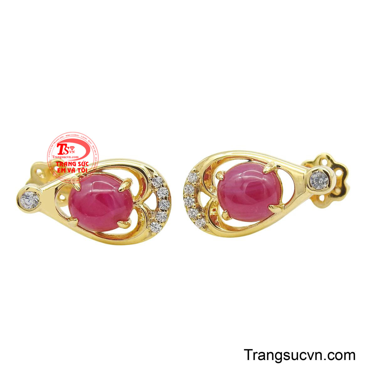 Kiểu chế tác: Hoa tai vàng tây bọc đá quý Ruby, thiết kế tinh tế sang trọng