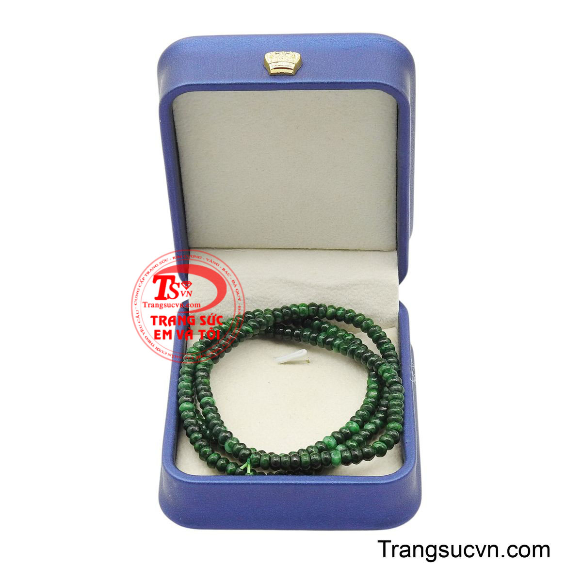 Từng hạt ngọc phỉ thúy được tuyển chọn kỹ lưỡng, mang sắc xanh lục đậm nhạt đan xen như bức tranh sơn thủy thu nhỏ, nơi núi non trùng điệp hòa cùng dòng nước mát lành, tạo nên chiều sâu huyền bí và cuốn hút.