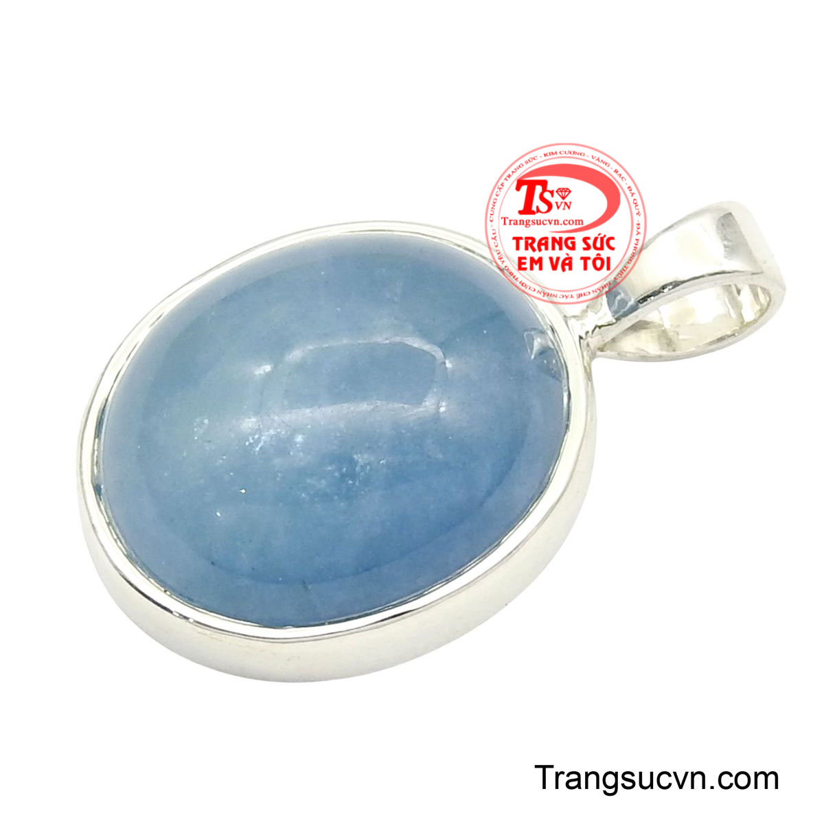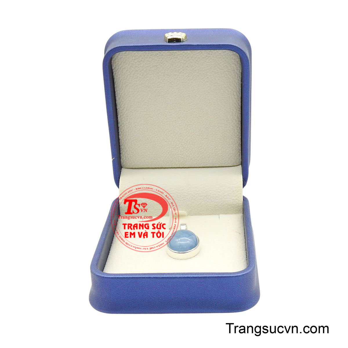 Mặt aquamarine bọc bạc nổi bật với gam xanh lam dịu mát, trong trẻo như làn nước biển đầu xuân.