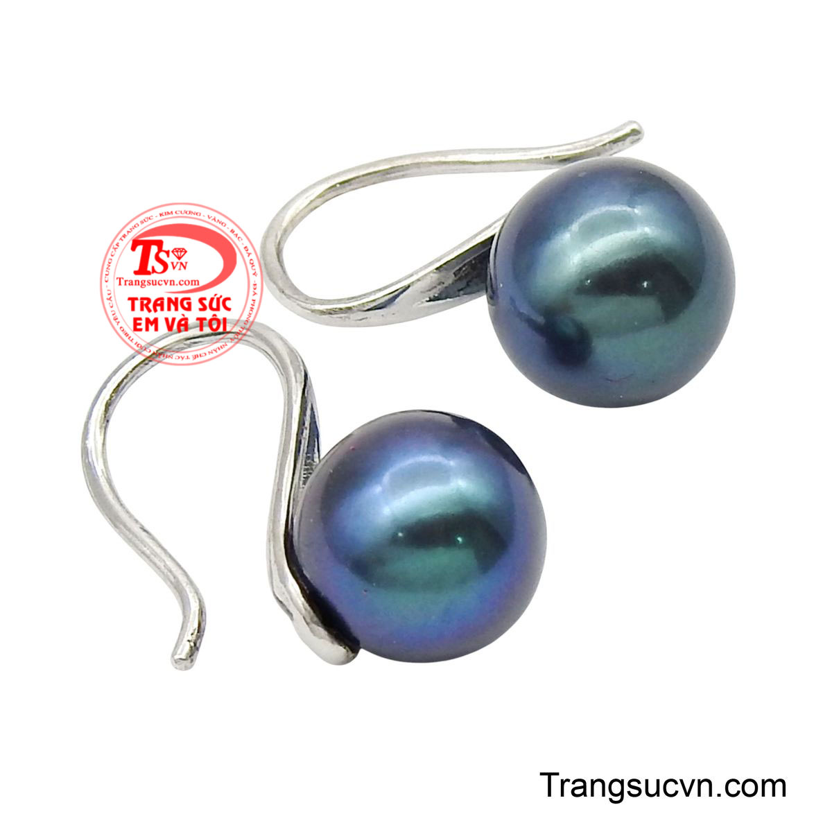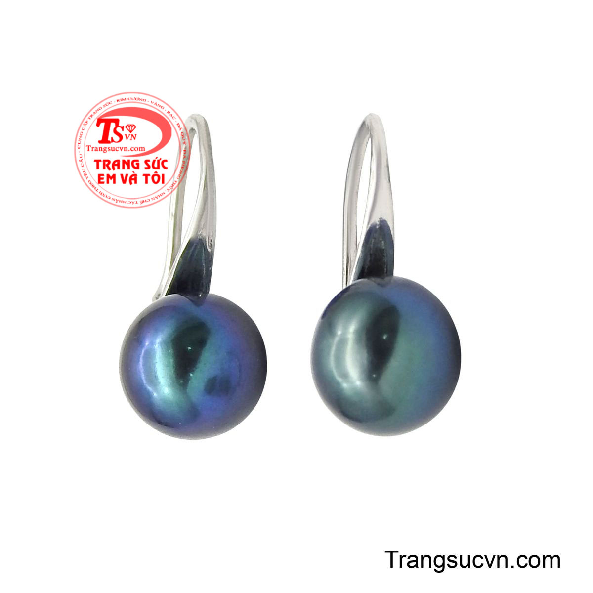 Đôi hoa tai ngọc trai bạc huyền bí gây ấn tượng với sắc ngọc xanh đen ánh khói, phản chiếu những dải màu lam lục đầy mê hoặc.