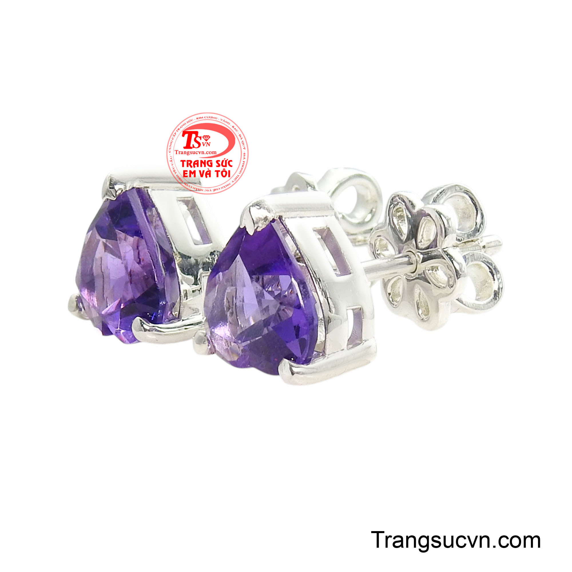 Hoa Tai Bạc Thạch Anh Tím Kiêu Sa