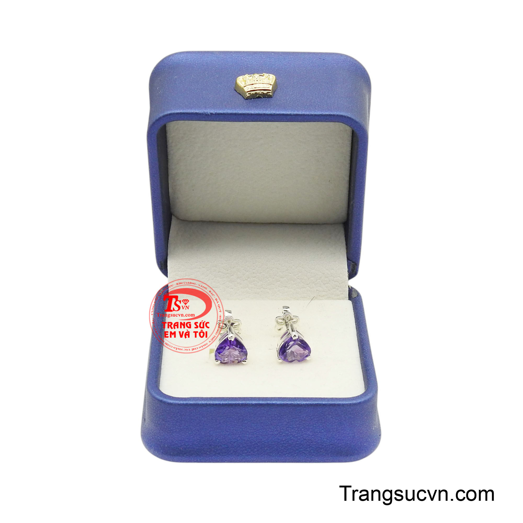 Điểm nổi bật của đôi hoa tai là viên đá thạch anh tím hình trái tim được cắt giác tinh xảo, tạo nên sắc tím quyến rũ và lấp lánh dưới ánh sáng.