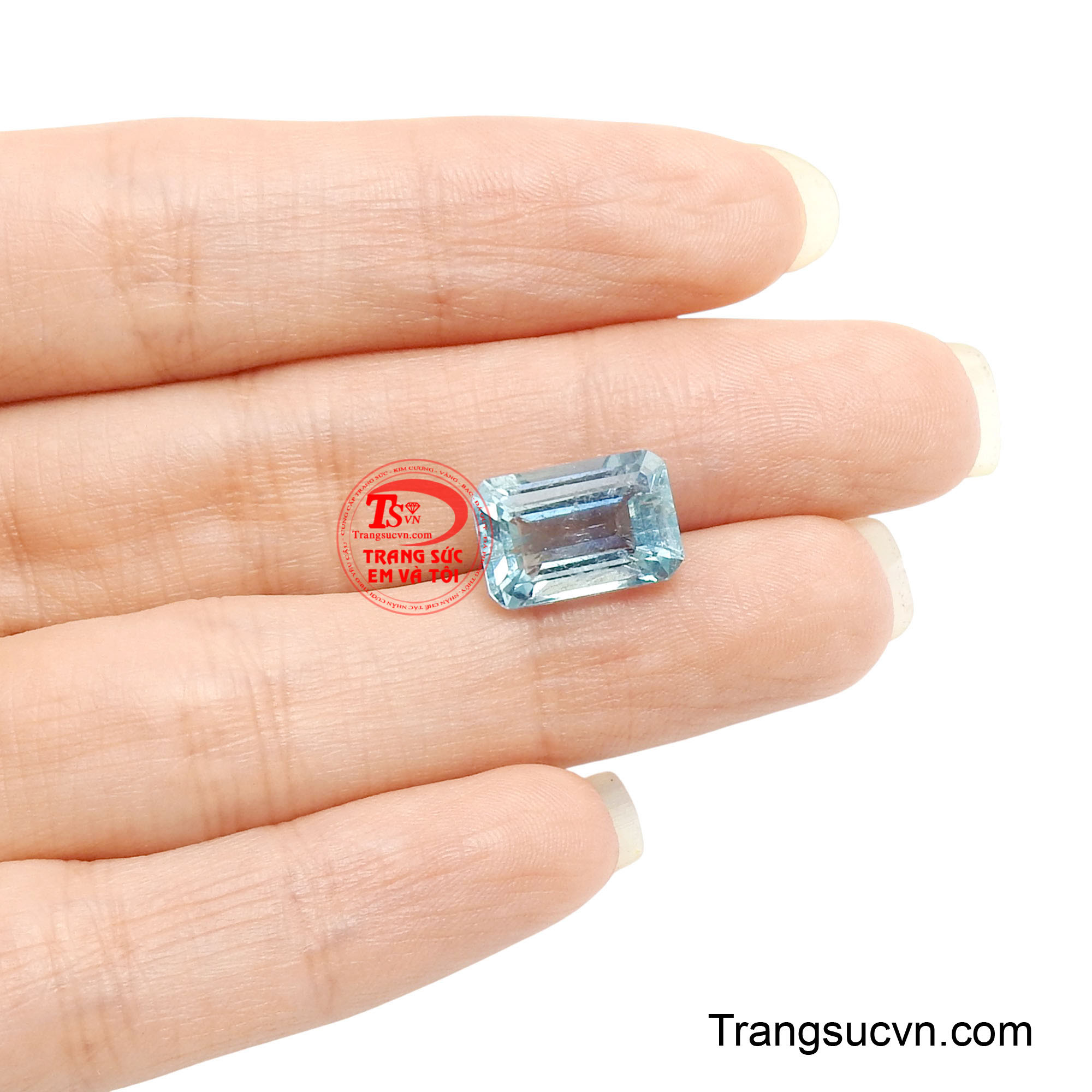 Viên Aquamarine Tỏa Sáng là viên đá mang sắc xanh đại dương trong trẻo, như lưu giữ trọn vẹn ánh sáng dịu dàng của biển trời.