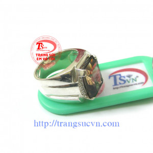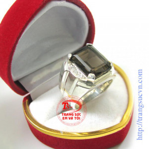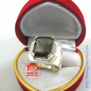 - Nhẫn được gắn 1 viên đá thạch anh khói thiên nhiên