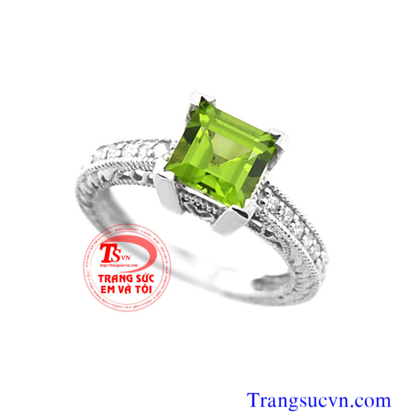 Nhẫn nữ đẹp vàn trắng đá peridot thiên nhiên Nhẫn nữ vàng tây đá peridot Nhẫn nữ vàng trắng Peridot