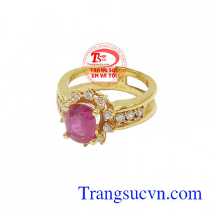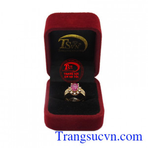 Kiểu chế tác: Nhẫn nữ vàng gắn đá quý ruby thiên nhiên