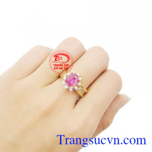 Nhẫn nữ vàng gắn đá quý ruby thiên nhiên