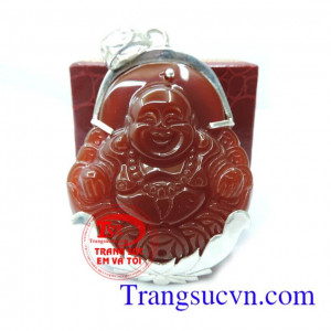 Mặt Di Lặc mã não đỏ, mặt phật Di lặc mã não đẹp, bọc móc bạc, mặt dây chuyền di lặc mang lại bình an, mặt di lặc cười đem lại niềm vui và may mắn trong cuộc sống.Loại sản phẩm: Mặt phật di lặc móc bạc