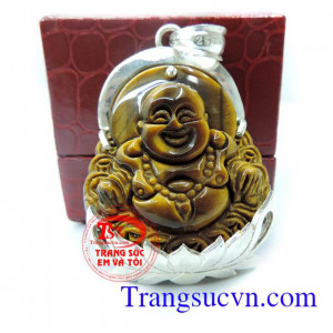Mặt Di lặc cười may mắn, Mặt di lặc biểu tượng cho sự thình vượng giàu sang, mặt di lặc cười mang lại mawy mắn, bán mặt đá mắt hổ Di lặc bọc bạc, mặt dây chuyền bạc đẹp.Loại sản phẩm: Mặt phật di lặc móc bạc