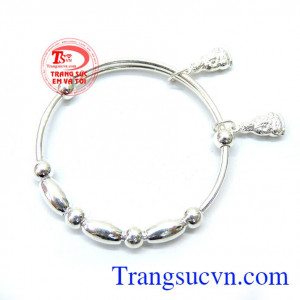 Vòng bạc cho trẻ đẹp Khi đeo vòng bạc cho trẻ không chỉ có tác dụng làm đẹp, mà bạc trắng còn có nhiều tác dụng rất tốt cho sức khỏe của trẻ như: Chống gió, chống cảm, báo hiệu vấn đề về sức khỏe