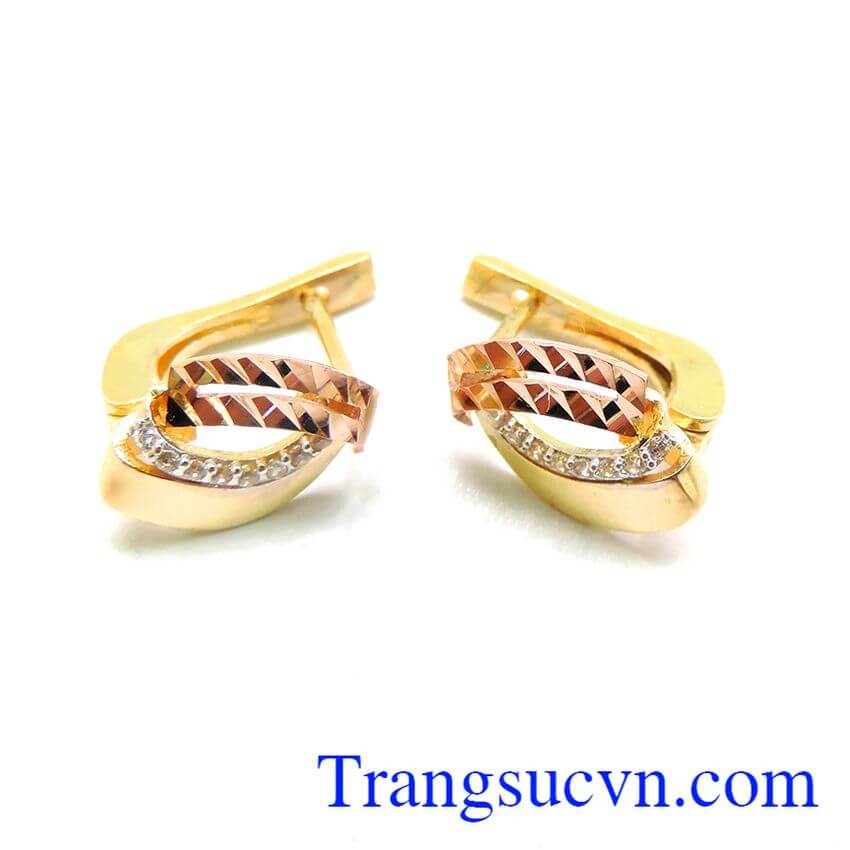 Hoa tai nữ vàng đẹp với thiết kế tinh tế, hoa tai vàng kết hợp với vàng hồng, hoa tai món quà ý nghĩa dành cho người phụ nữ mình yêu thương.