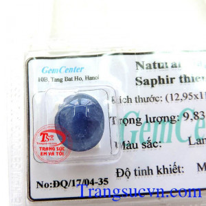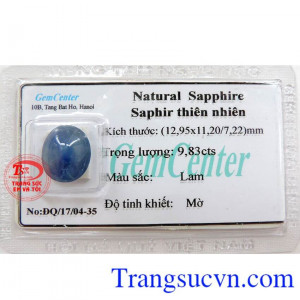 Viên Saphir Thiên Nhiên Lam ép vỉ . Saphir viên đá biểu tượng cho sự giàu sang, thịnh vượng tình yêu và lòng thủy chung. Sản phẩm uy tín chất lượng có giấy kiểm định kèm theo.