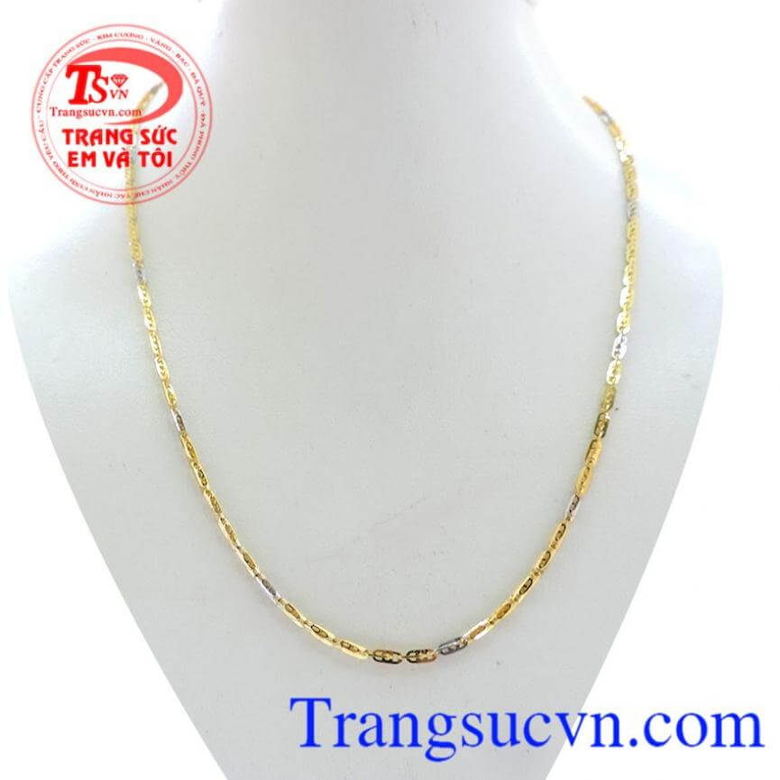 Dây vàng lồng 2 màu 10k, dây chuyền vàng 10k sản xuất, đẹp, dây chuyền thiết kế dạng mắt xích lồng với 5 mắt vàng 1 mắt trắng, dây chuyền vàng đẹp nam, nữ, dây chuyền bảo hành 6 tháng, vận chuyển toàn quốcLoại sản phẩm: Dây chuyền vàng