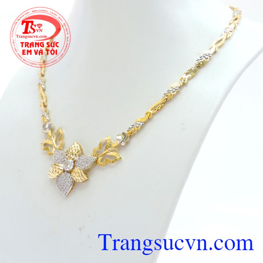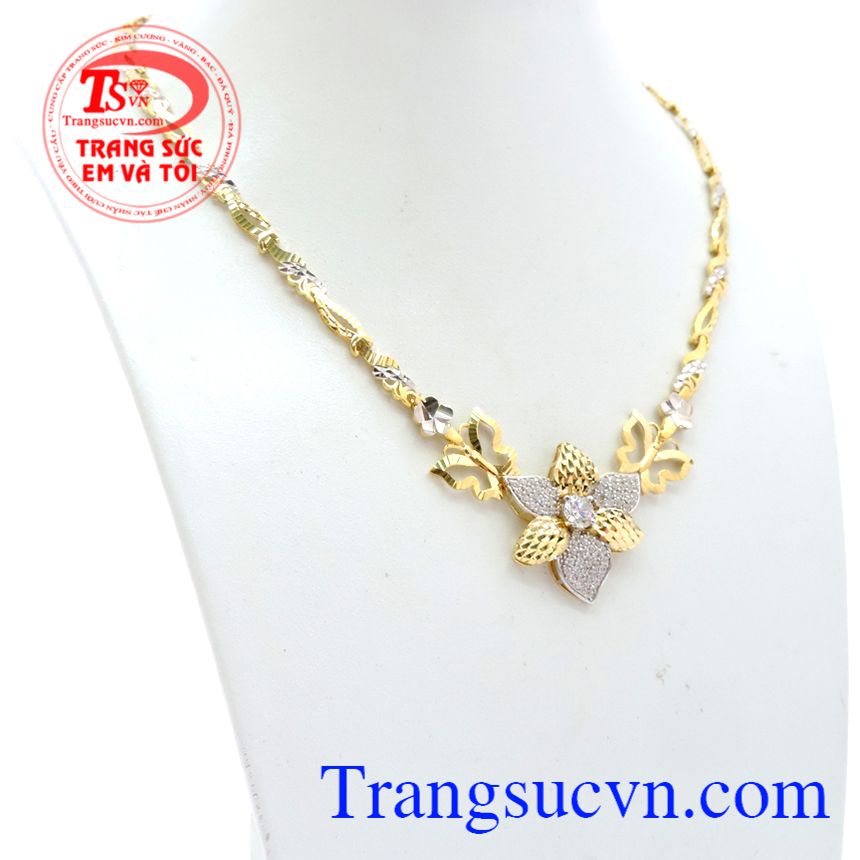 Hình ảnh: Kiềng Hoa Hạnh Phúc Lứa Đôi. Kiềng vàng tây nữ đeo bền đẹp sáng bóng.