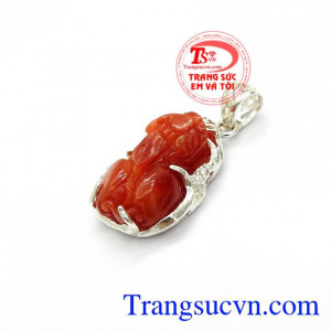 Kiểu chế tác: Mặt tỳ hưu cẩm thạch bọc bạc tinh tế, đeo hợp phong thủy