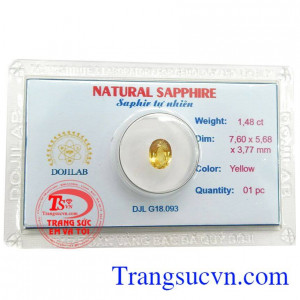 Viên Saphire vàng sang trọng là sản phẩm đá quý cao cấp, ép vỉ cẩn thận,có giấy kiểm định, sản phẩm mang lại nhiều may mắn, tài lộc cho người đeo. Viên Saphire vàng sang trọng phù hợp làm nhẫn nữ, nhẫn nam, mặt dây chuyền, lắc tay.Loại đá quý: Sapphire vàng