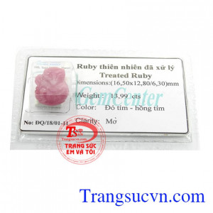 Hồ ly ruby may mắn là sản phẩm đá ruby thiên nhiên, bảo hành 6 tháng. Ruby có khả năng tạo ra nguồn năng lượng trong cơ thể. Người xưa cho rằng Ruby có khả năng chữa các bệnh về tim, não, máu, các bệnh về xương khớp. Ruby giúp chúng ta tăng thêm sức mạnh và bổ trợ cho các hoạt động về não phát triển như khả năng tăng trí nhớ. màu đỏ của ruby rất riêng biệt, tượng trưng cho sự ấm áp và rực lửa của những đam mê, nóng bỏng, quyền lực nhưng cũng rất tình cảm.Loại sản phẩm: Đá quý ruby