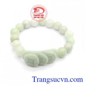 Chuỗi Tay Đồng Tiền May Mắn chế tác độc đáo, tinh xảo, Chuỗi tay Cẩm Thạch thiên nhiên, Chuỗi Tay Đồng Tiền May Mắn chế tác từ ngọc Cẩm Thạch đeo đẹp, sang trọng cho bạn nữ, ngoài ra biểu tượng đồng tiền trong phong thủy cồn đại diện cho tiền bạc, lộc tài, may mắn trong cuộc sống của người đeo.Loại sản phẩm: Chuỗi Vòng Tay Jadeite