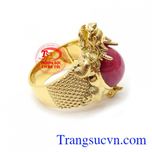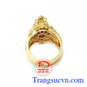 Kiểu chế tác: Nhẫn vàng gắn đá chủ Ruby thiên nhiên, Nhẫn nam vàng đảm bảo chất lượng Uy tín, Đeo hợp phong thủy
