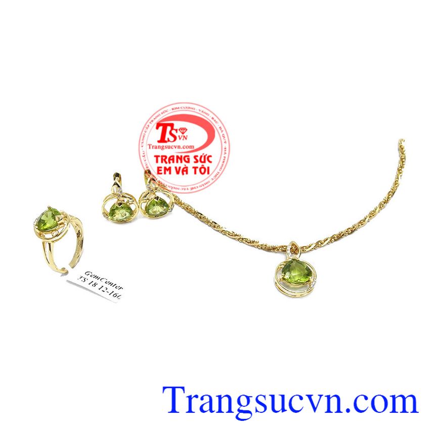 Bộ trang sức hoàng gia, Peridot thiên nhiên, mặt dây vàng đá quý