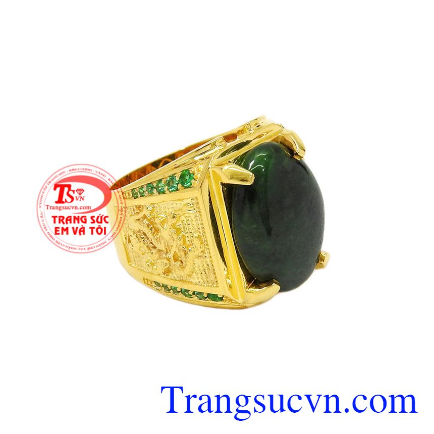 Kiểu chế tác: Nhẫn vàng gắn đá chủ cẩm thạch thiên nhiên, Nhẫn nam vàng đảm bảo chất lượng Uy tín, Đeo hợp phong thủy