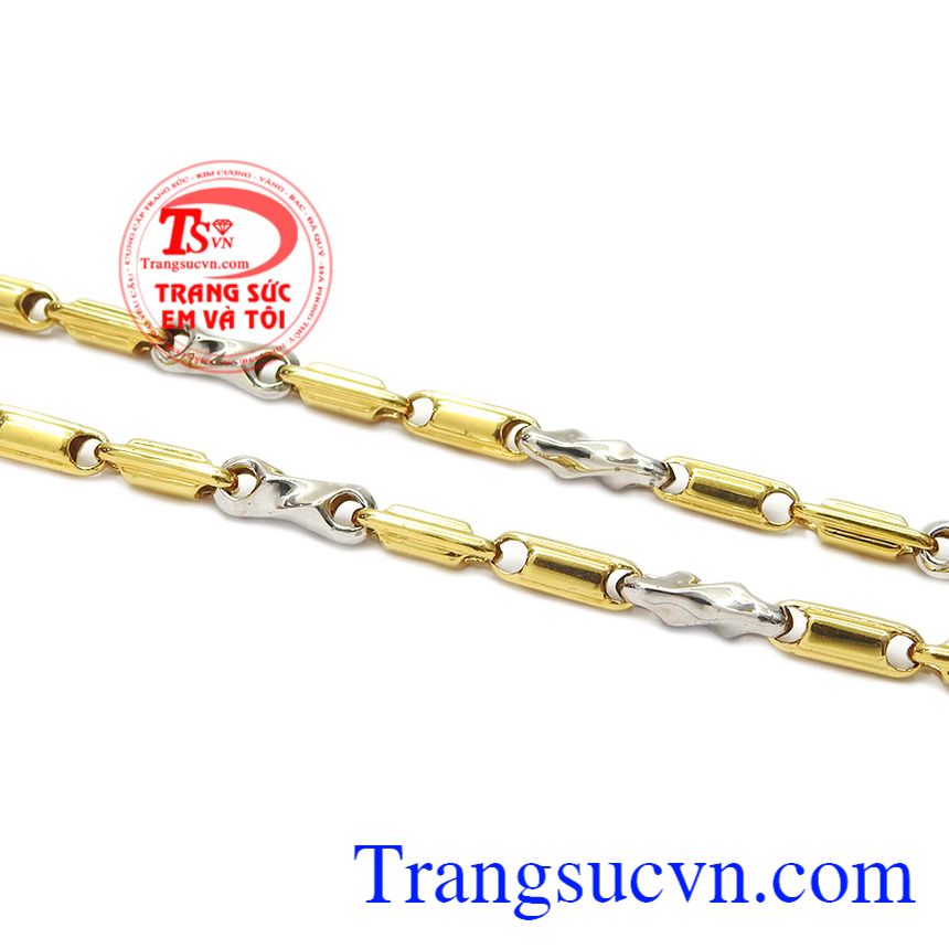 Sự kết hợp vàng màu và vàng trắng tạo nên sự mới mẻ, hợp thời trang. Dây chuyền nam nhập khẩu phong cách