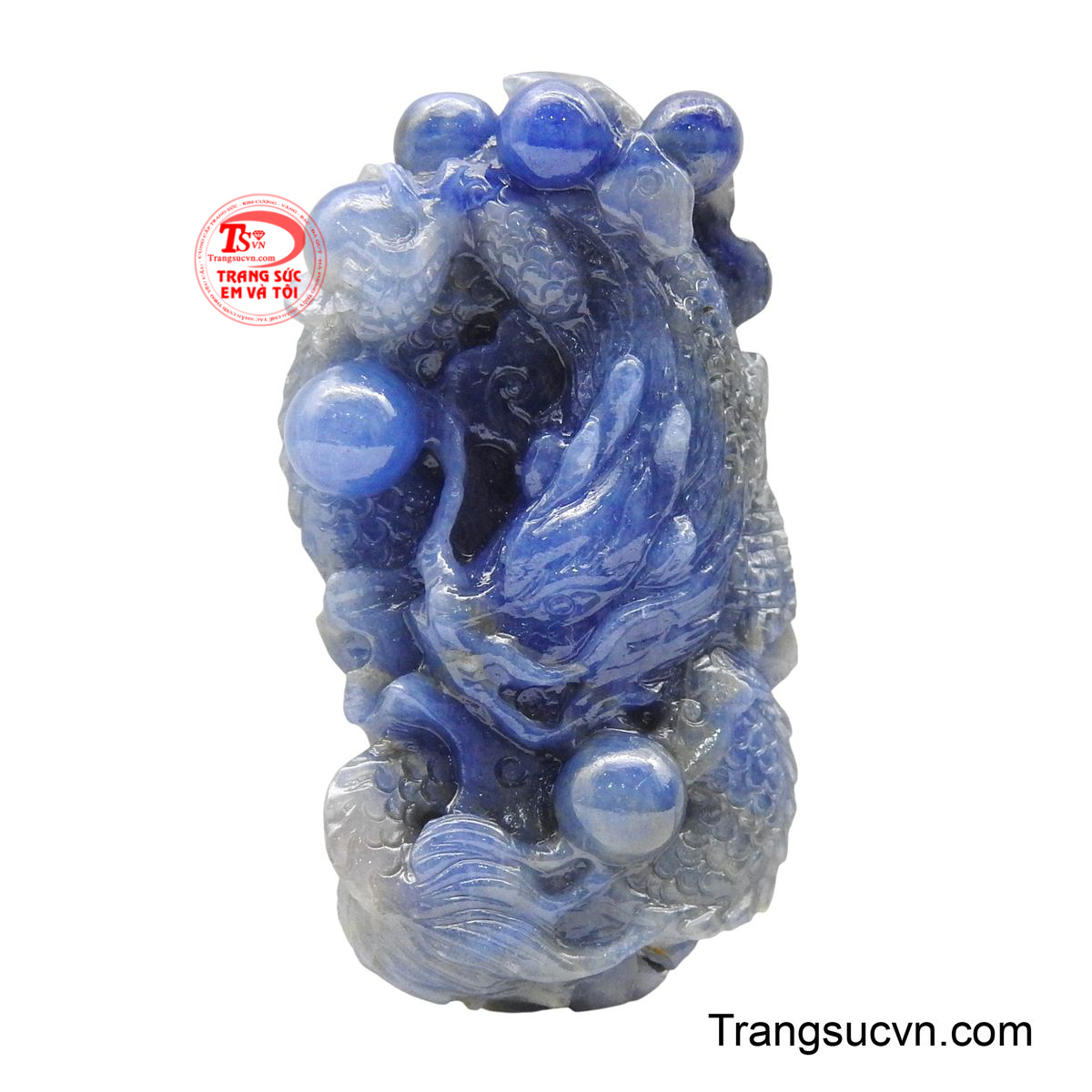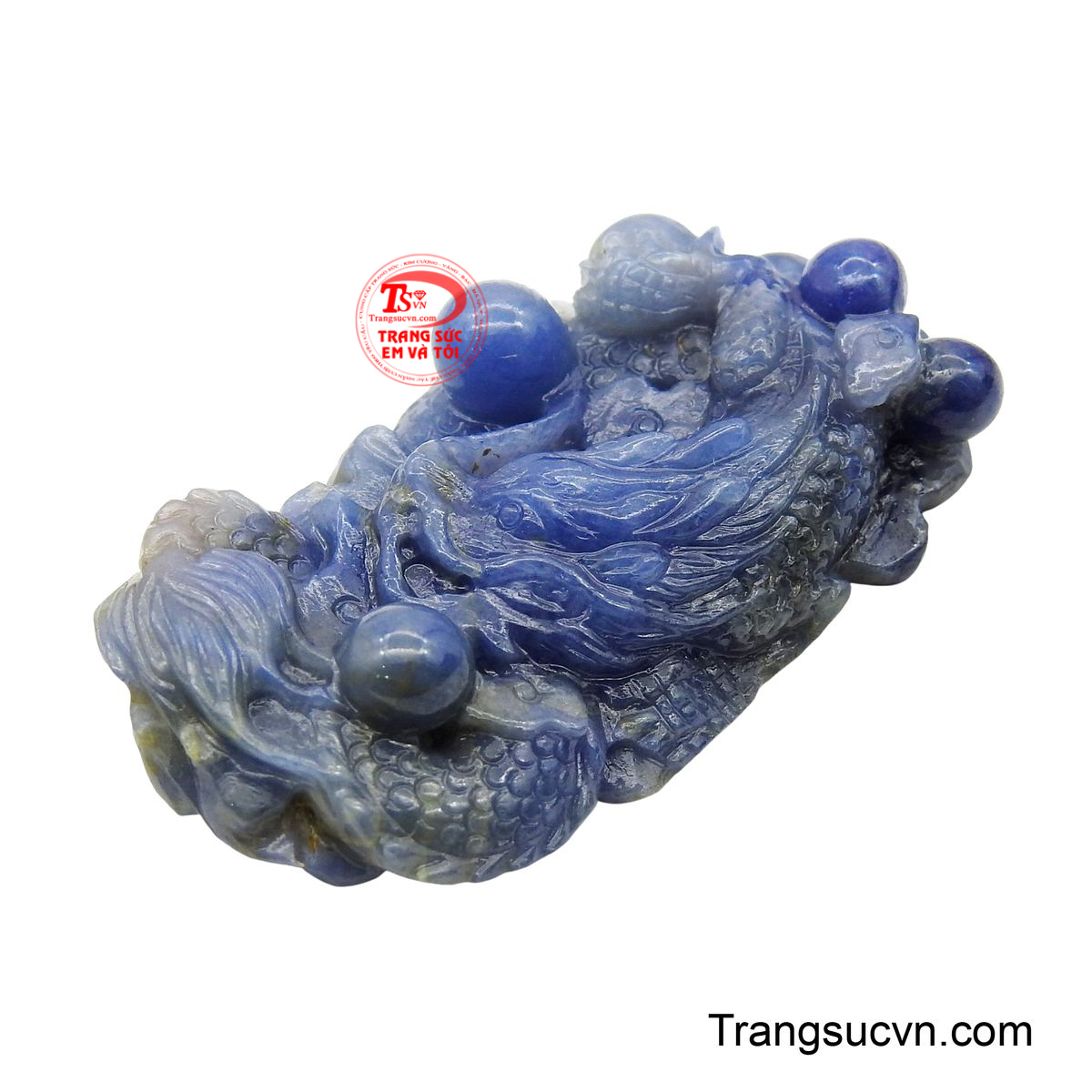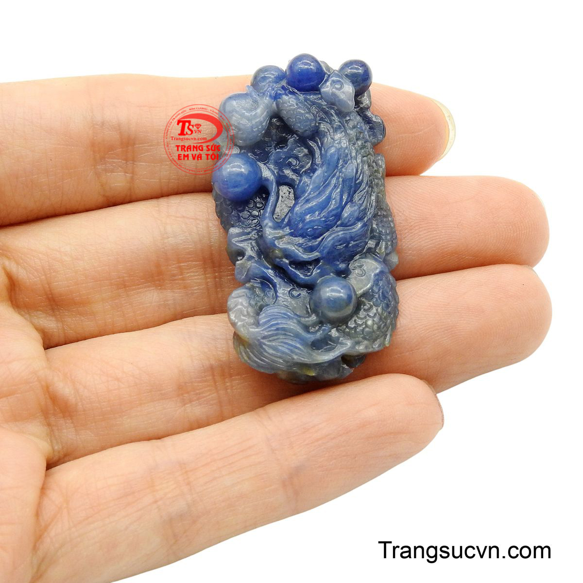 Viên Sapphire màu xanh lam thẳm, quý giá, được điêu khắc hình ảnh Rồng đang trỗi dậy từ lòng biển sâu, với thân rồng cuộn xoáy đầy uy lực và khí chất ngút trời.