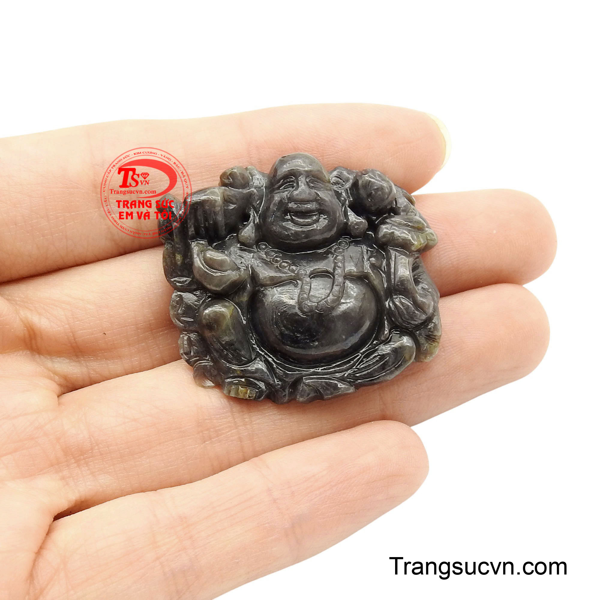 Mặt phật di lặc vượng phúc được chọn từ sapphire ánh sáng cao, vân đá rõ ràng, mang sắc xanh phúc khí.