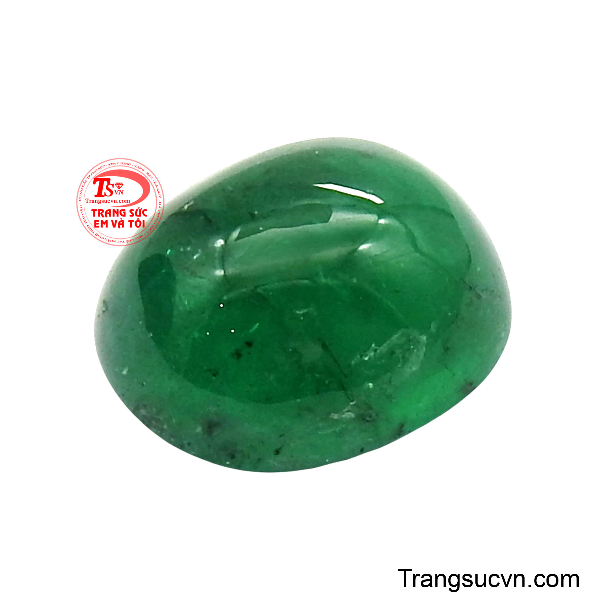 Với sắc xanh lục có chiều sâu và bề mặt cabochon bóng mịn, viên đá đặc biệt tỏa sáng khi được đính kết cùng trang sức vàng, tạo nên sự tương phản sang trọng, nổi bật và đầy quyền uy.