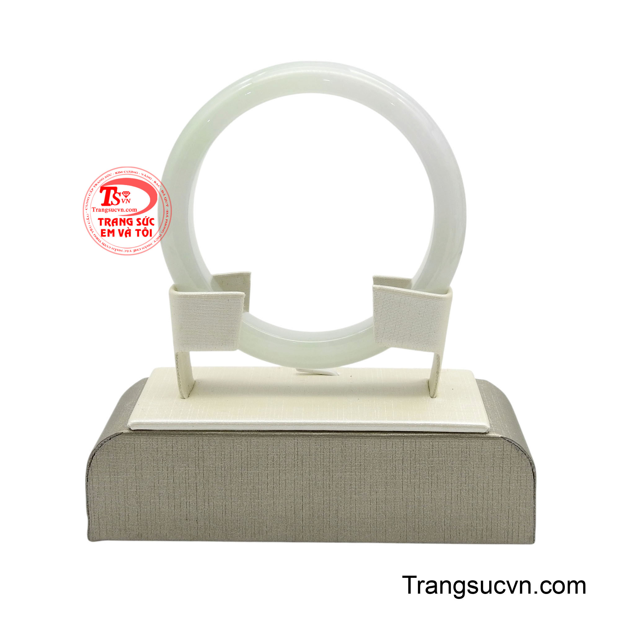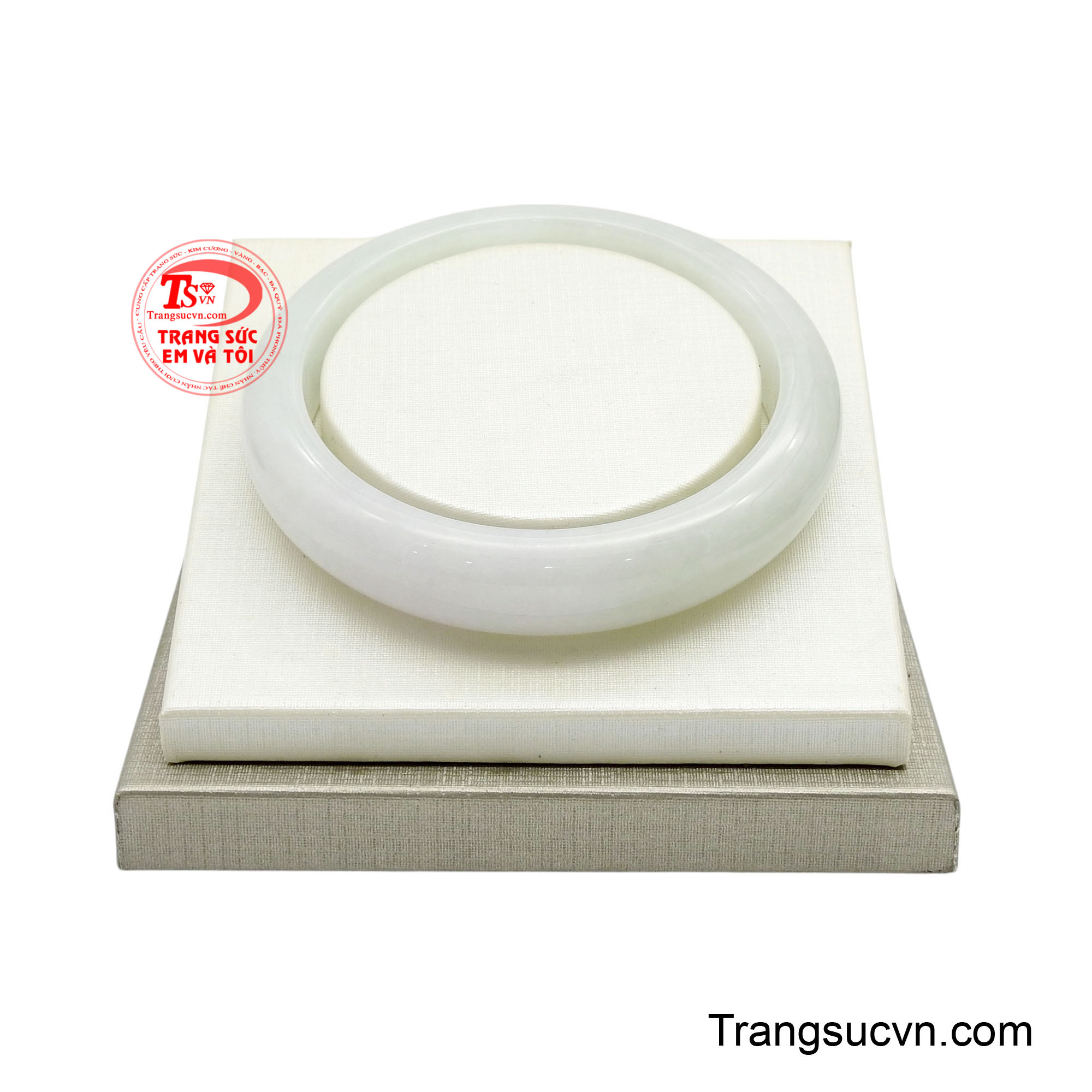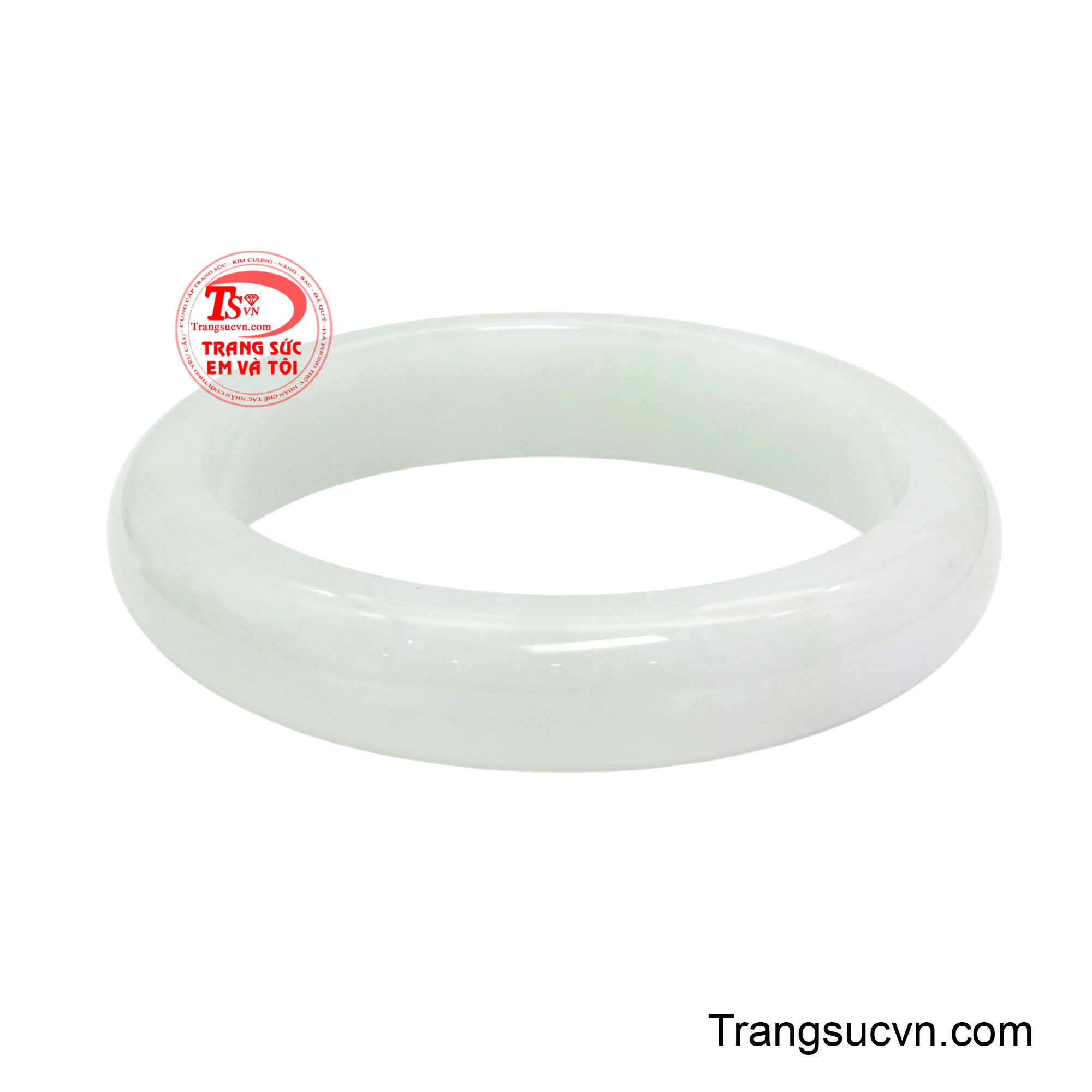 Vòng Bạch Ngọc Sương Type A là hiện thân của vẻ đẹp tinh khiết tựa như một dải sương mai còn đọng lại trên phiến lá lúc bình minh vừa chạm ngõ. Sắc trắng của ngọc mềm mại, phảng phất ánh xanh dịu nhẹ ẩn sâu bên trong. Khi nghiêng dưới ánh sáng, bề mặt vòng ánh lên lớp quang mịn màng, trong trẻo như màn sương mỏng khẽ lay động. Hiệu ứng ngậm nước đặc trưng của ngọc Type A thiên nhiên tạo nên chiều sâu tĩnh tặng, càng nhìn càng thấy thanh khiết, càng ngắm càng cảm nhận được sự yên bình lan tỏa. Thớ ngọc mịn, kết cấu chắc cho thấy cấu trúc tinh thể đồng đều và ổn định. Chính điều này mang lại độ bóng êm dịu, không chói gắt mà sáng nhẹ như ánh trăng phủ lên mặt nước. Vân ngọc gần như hòa tan vào nền trắng, chuyển sắc tinh tế thay vì phân tách rõ rệt, tạo nên tổng thể trang nhã và thuần khiết.