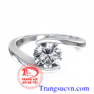 Nhẫn nữ kim cương đính hôn Nhẫn đính hôn vàng trắng gắn đá kim cương
