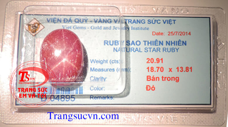 Tên đá quý: Ruby sao thiên nhiên ( Natural star ruby) Hồng ngọc sao