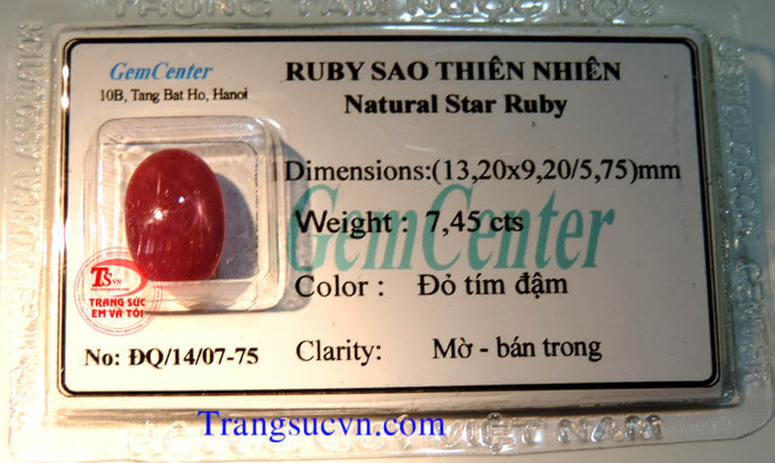 Tên đá quý: Ruby sao thiên nhiên ( Natural star ruby) Hồng ngọc sao