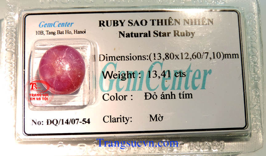 Tên đá quý: Ruby sao thiên nhiên ( Natural star ruby) Hồng ngọc sao
