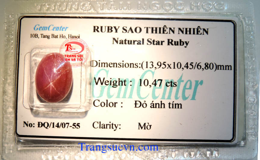Tên đá quý: Ruby sao thiên nhiên ( Natural star ruby) Hồng ngọc sao