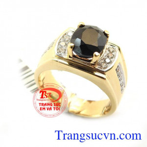 Kiểu chế tác: Nhẫn nam vàng 14k gắn đá quý sapphire thiên nhiên